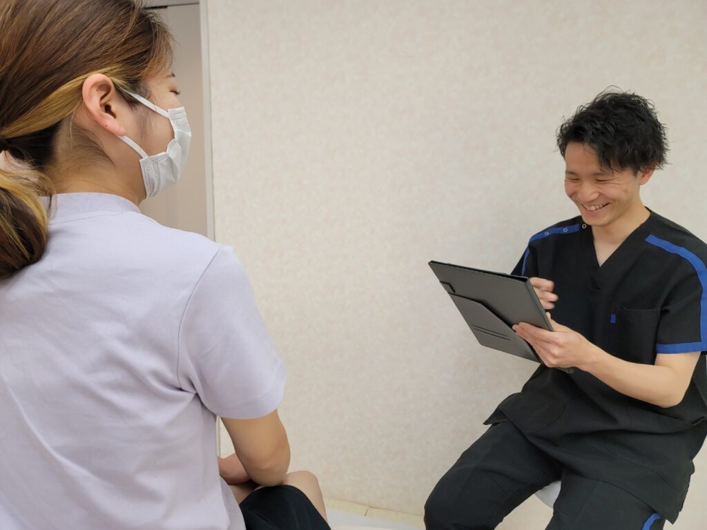 初回は施術前に痛みの原因を確認するために、問診や検査を十分に行います